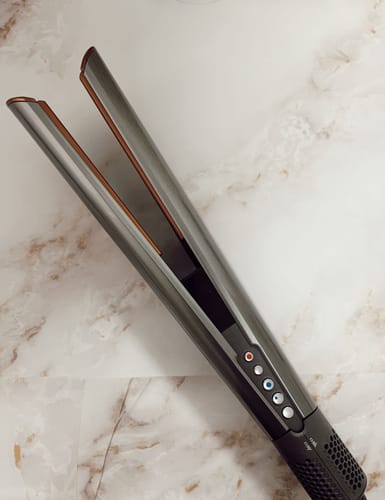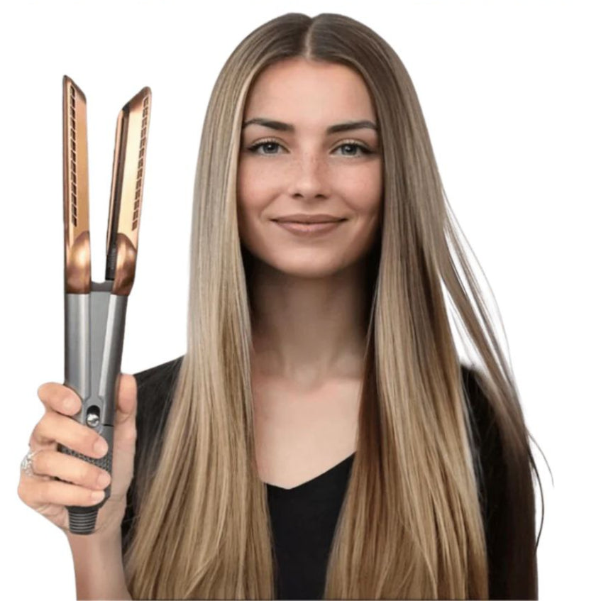 es una innovadora plancha-secador 2 en 1 que combina rendimiento y cuidado del cabello. Gracias a su precisa tecnología de flujo de aire y a sus placas de cerámica, proporciona un alisado rápido a la vez que preserva la salud de tu cabello.